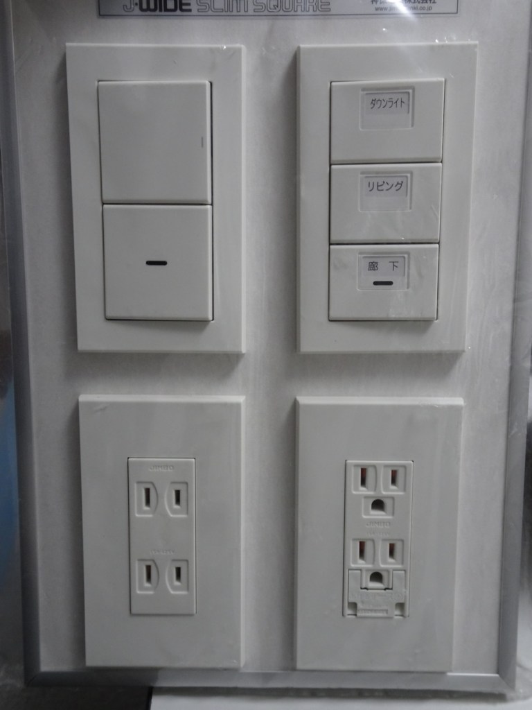 電気屋さんご提案のスイッチ類。神保電器の「J・WIDE SLIM SQUARE」。