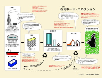 石膏ボード・コネクションとでも呼びたくなるような巨大な共同体は、それ自体が不気味な生き物のようにふくれあがり、自分では身動きが取れなくなっているかのようです。しかし、石膏ボードを使うかどうかは私たちめいめいが考えて選択する問題です。