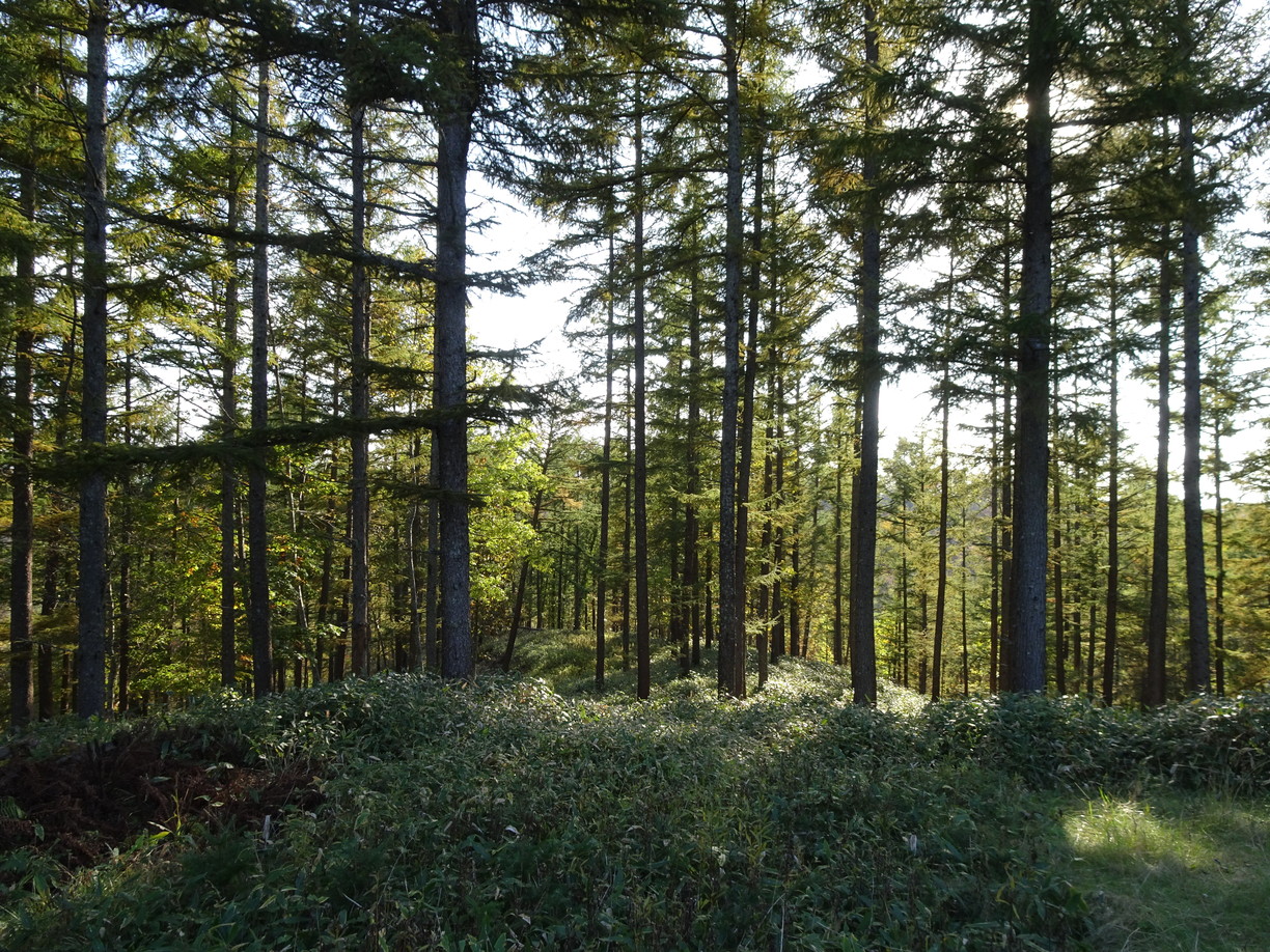 社有林から伐り出したカラマツを構造材に使うため、候補となる伐採地を製材所の社長さんの案内で、大工さんと3人で見てまわりました。