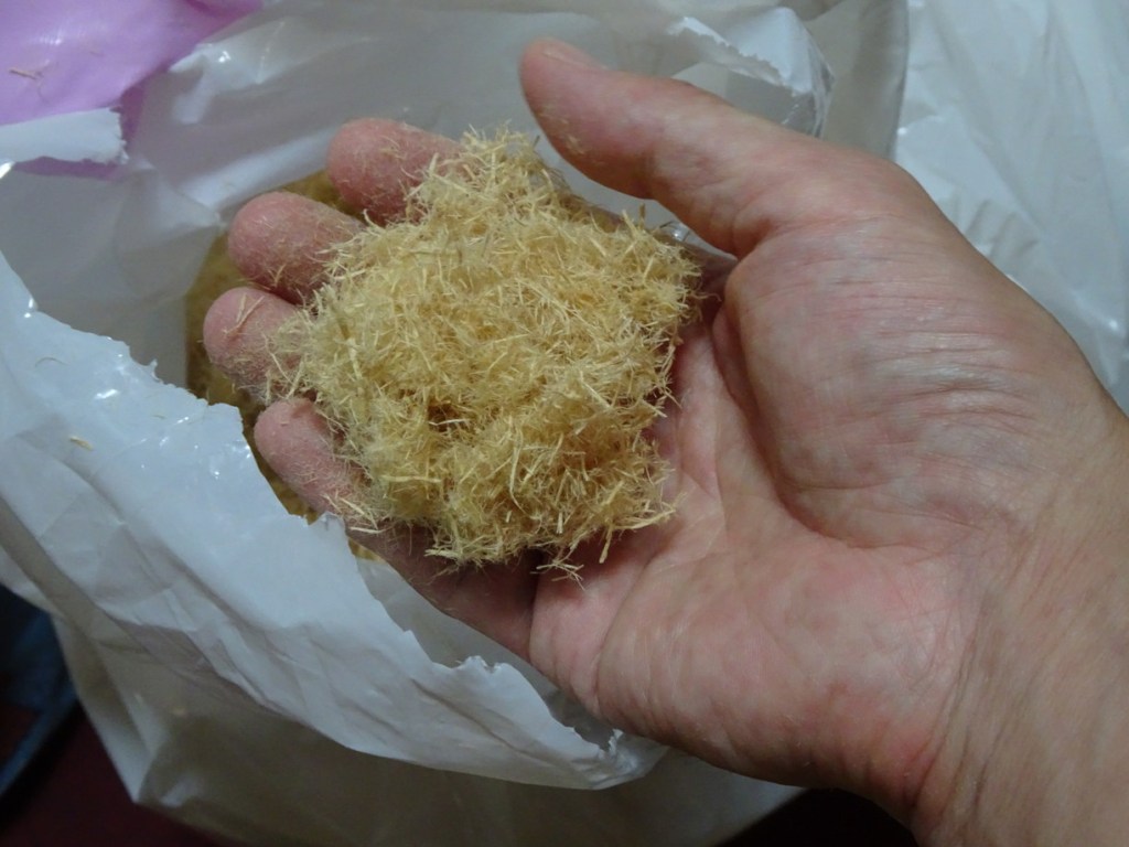 これを苫小牧にあるウッドファイバー社の工場へ運んで繊維状に加工したのがこちら。