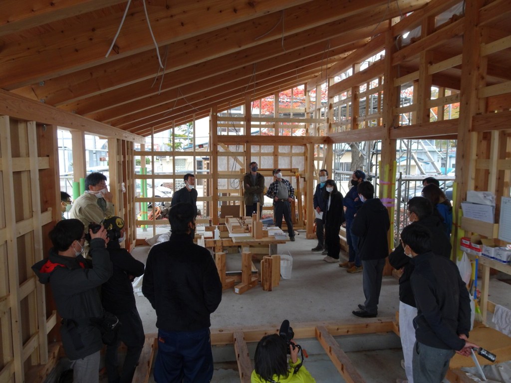 投稿日: 2021年10月25日2021年10月26日 投稿者: 菅家太建築設計事務所構造見学会。 ー製材所社屋を建てる@十勝ー 2021年10月25日 晩秋。 10月22日、構造見学会が行われました。 ▲建設の経緯、構造計画の特徴、使用材料についてなどなど、実物の構造体を見ながら話は進みます。 ▲林産試験場からはカラマツの乾燥方法について研究報告がありました。 関連