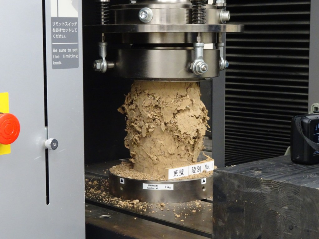 1か月ほど前になりますが、北海道産(旭川と陸別)の壁土の圧縮強度試験を実施しました。試験は近畿職業能力開発大学校・宇都宮研究室に依頼しました。